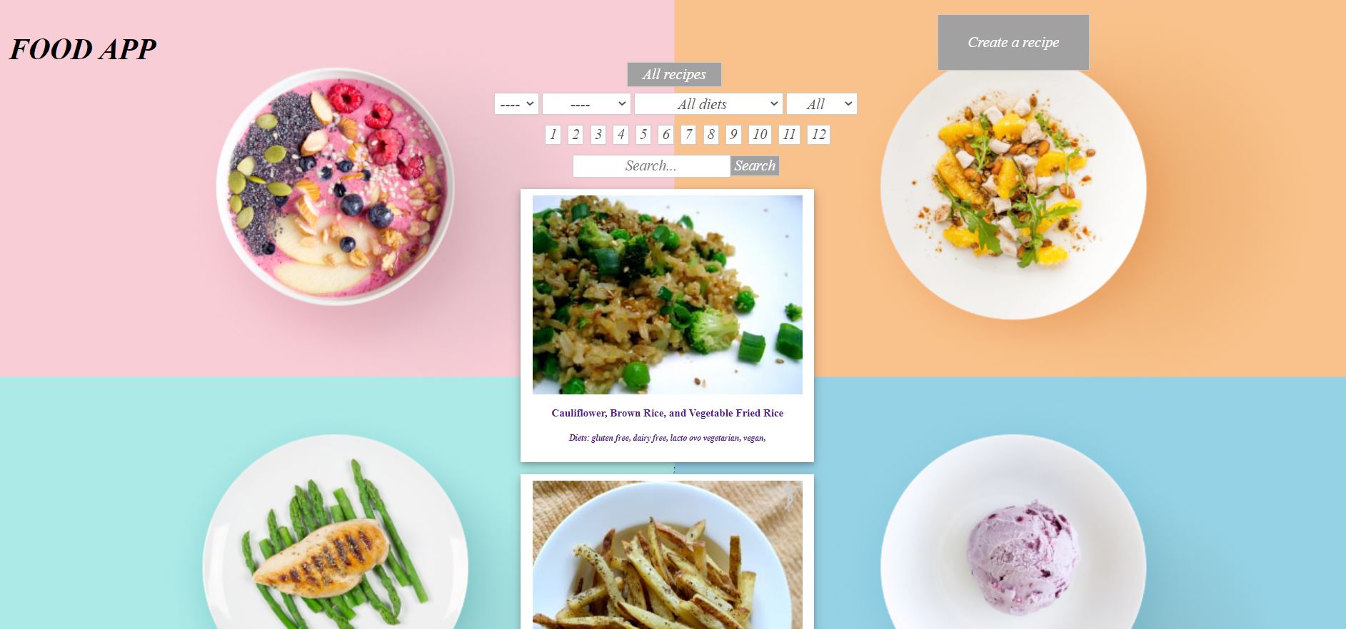 This is an academic project that connects an API with a web page (back-end and front-end) that provides recipes for all kinds of food. Technologies: React Redux CSS modules Express Sequelize - Postgres API spoonacular